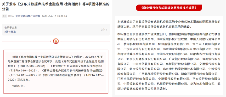 该标准将为商业银行的互联网转型在技术上提供明确的指导作用,对加速行业的快速发展起到积极作用,同时填补分布式技术在金融行业应用类标准的空白。